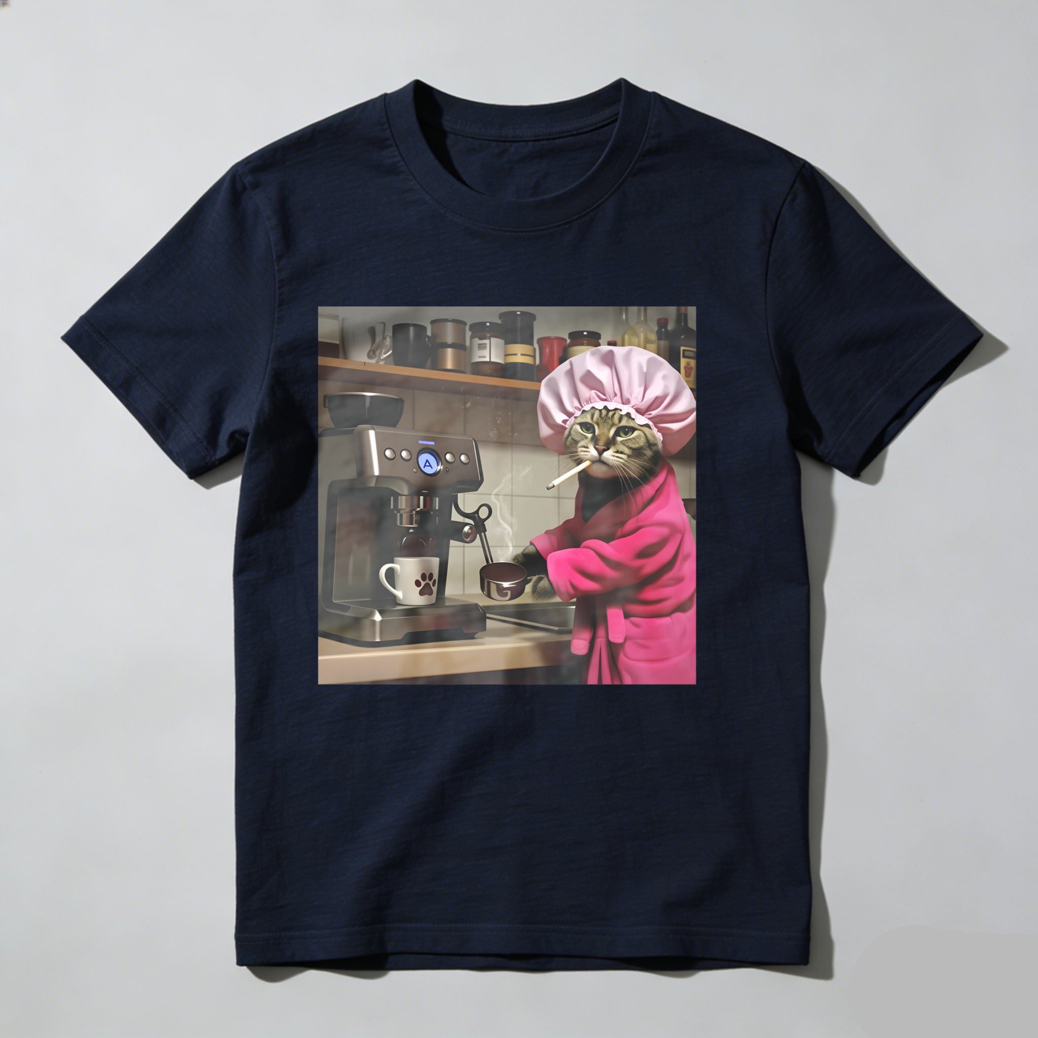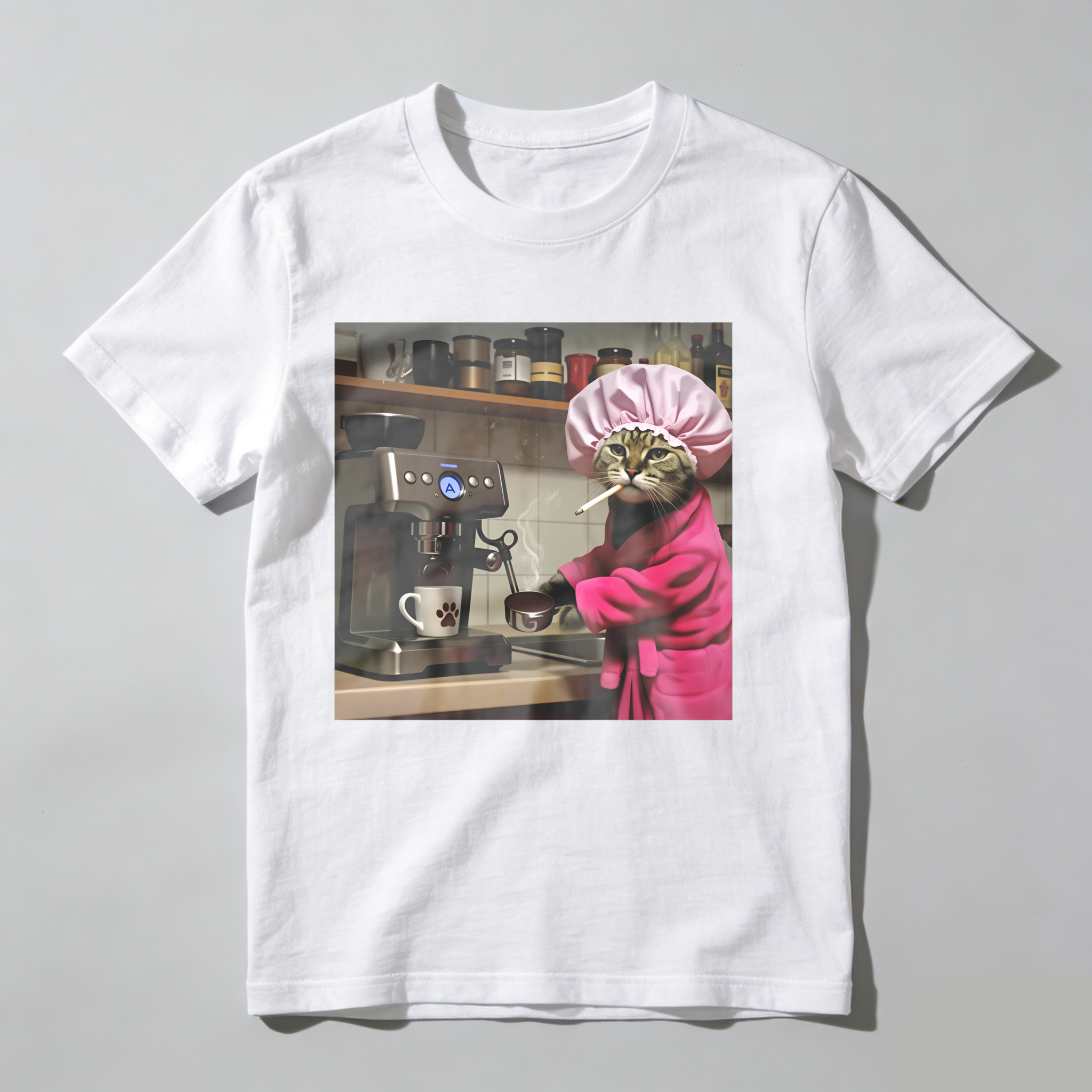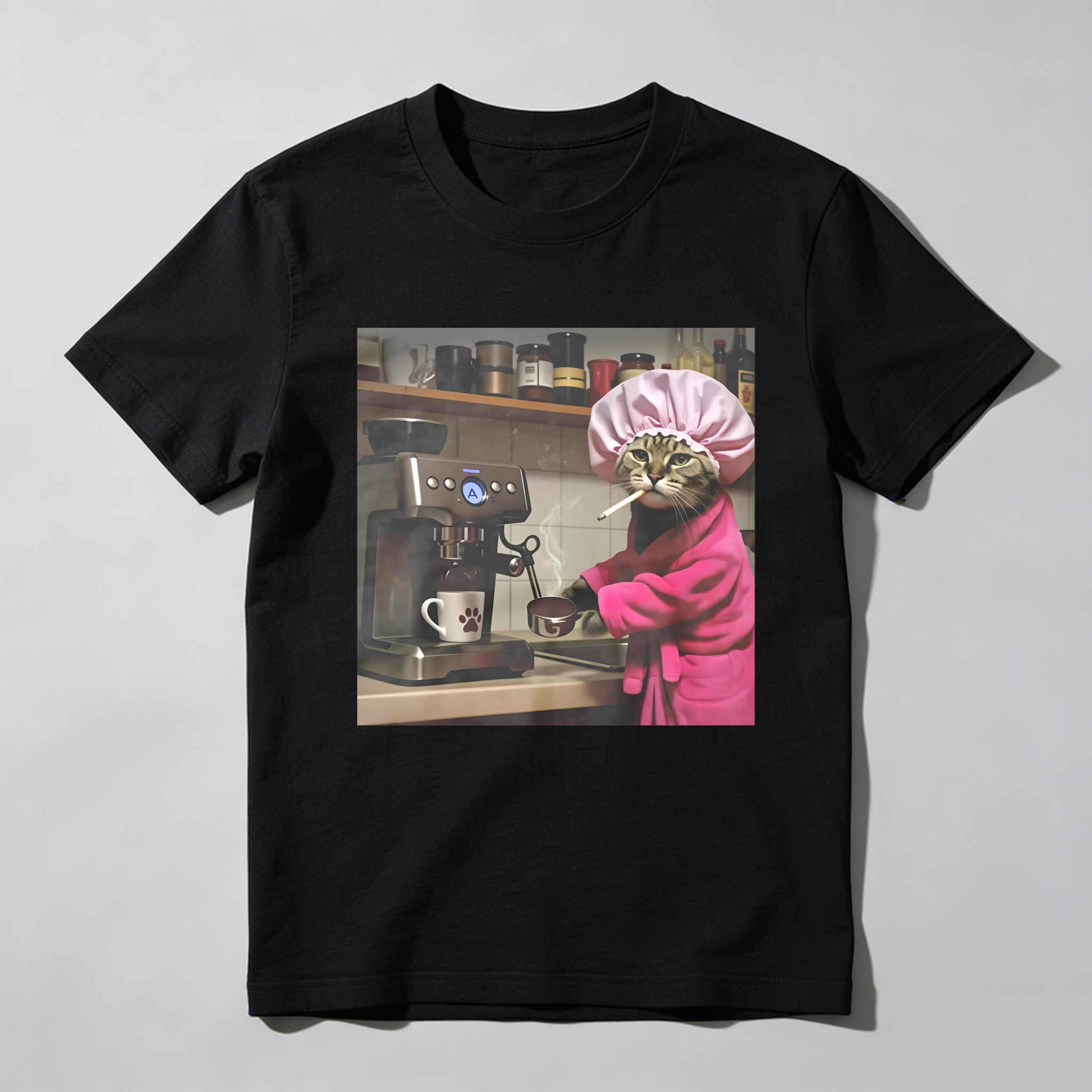 Cat In Chef Hat Making Coffee tshirt 100% cotton