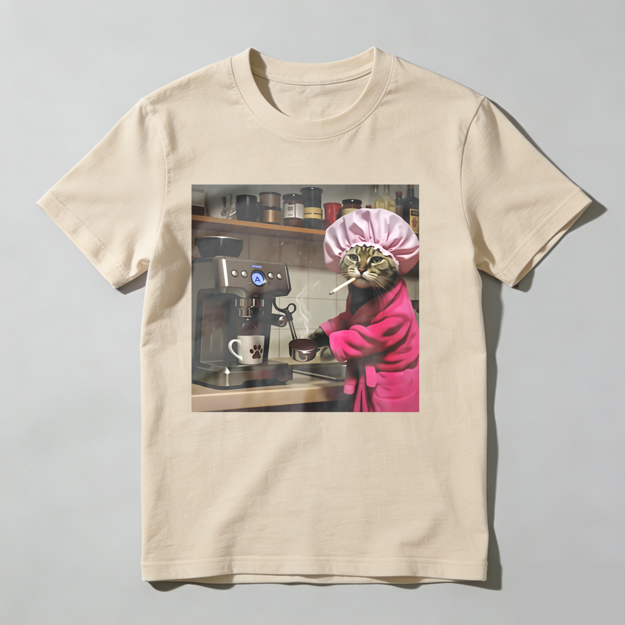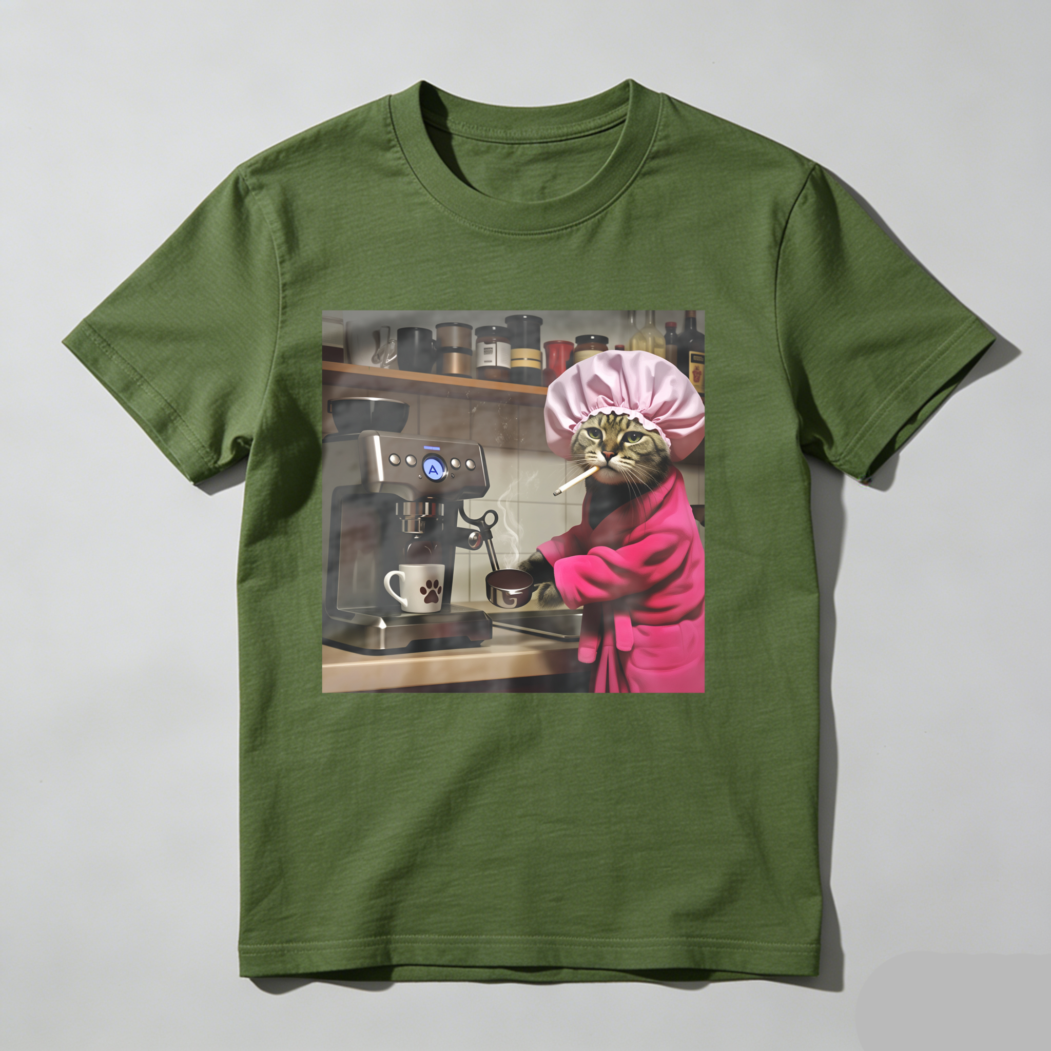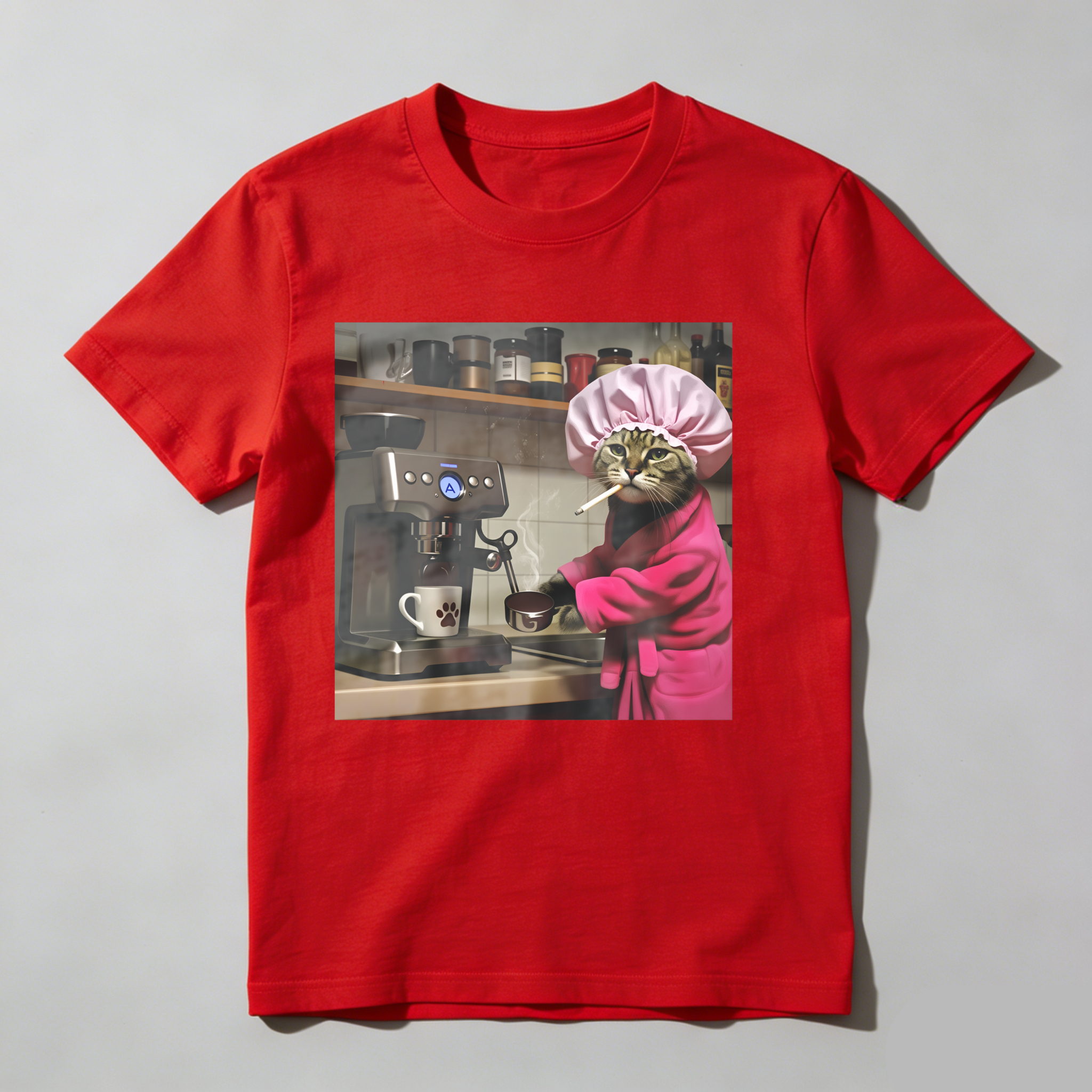 Cat In Chef Hat Making Coffee tshirt 100% cotton